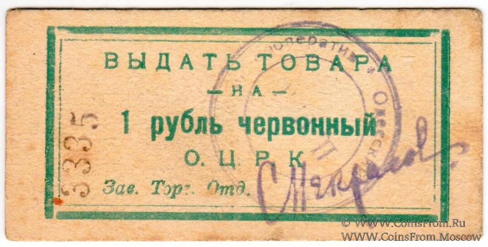 В червонных рублях без даты (1923 г.) на тонком картоне. Одесский Центральный Рабочий Кооператив (О.Ц.Р.К.).