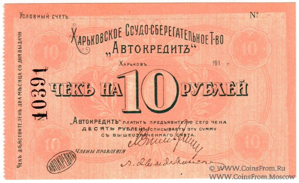 Чек 1919 г. Ссудо-сберегательное товарищество "АВТОКРЕДИТ".