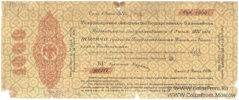Выпуск 1 июня 1919 г. Серия БГ. 5% Краткосрочные Обязательства Государственного Казначейства.