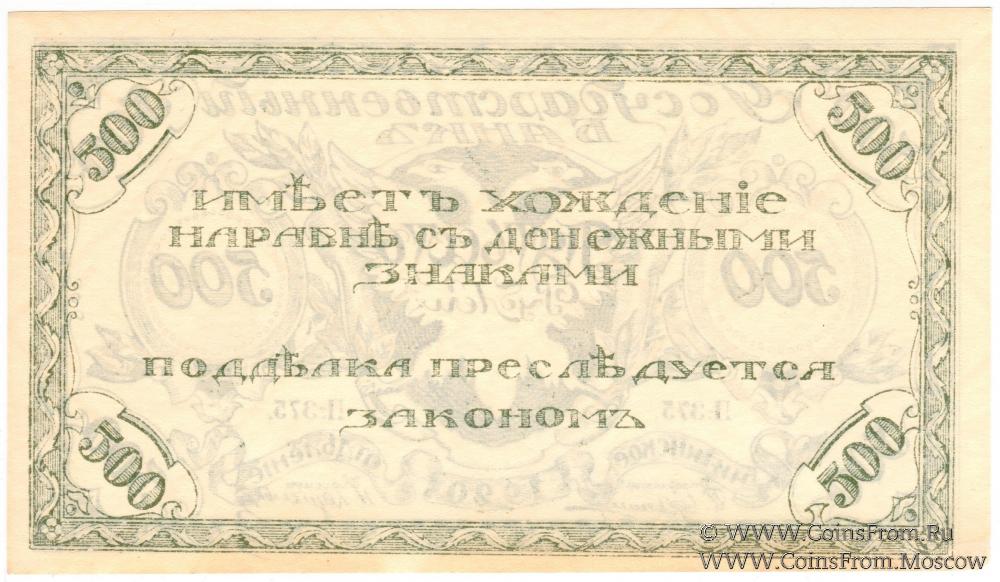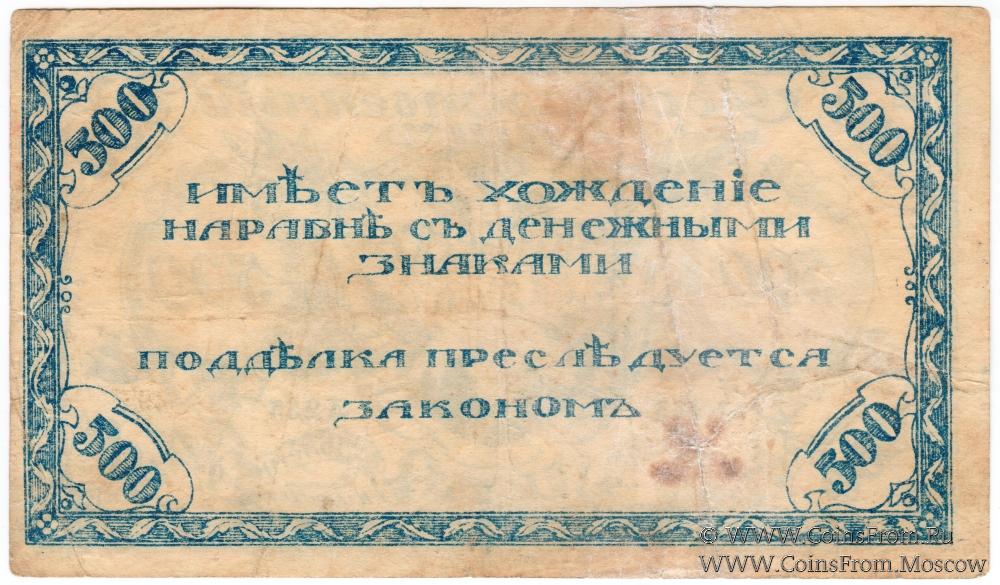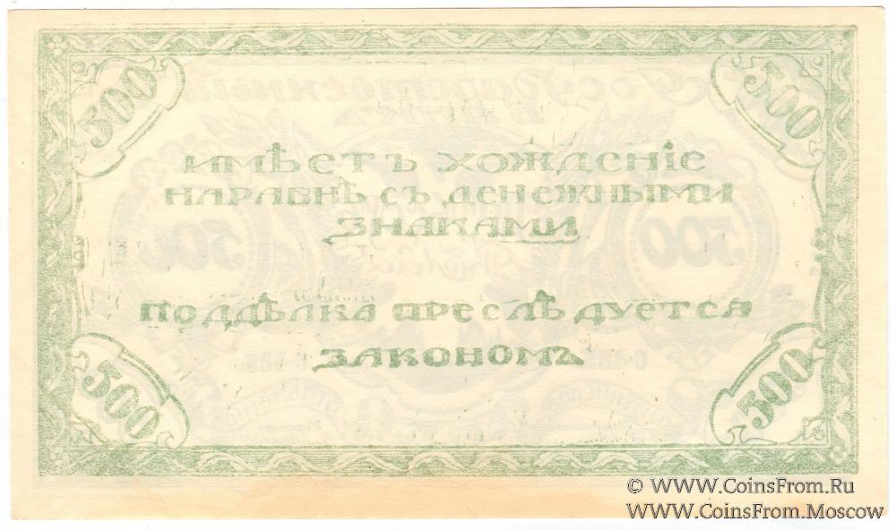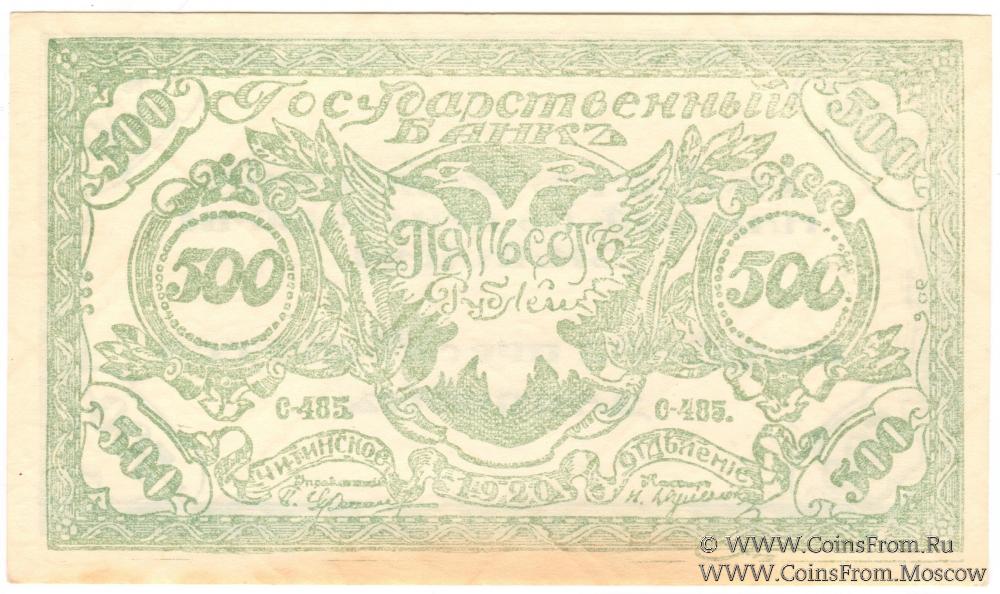 500 рублей 1920 г. - 3 экземпляра (А-255 - синий; С-485 - светло-зеленый; П-375 - темно-зеленый);