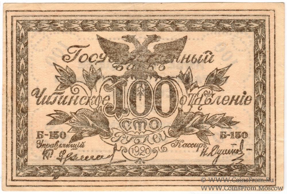 100 рублей 1920 г. - 2 экземпляра (Б-150, реверс: рамка из кубиков, бумага белая;