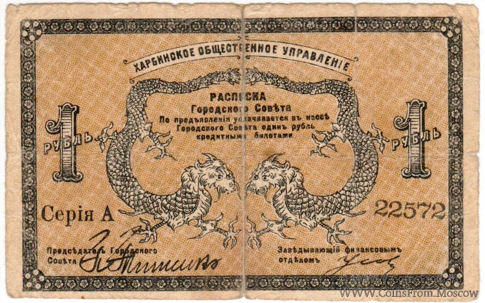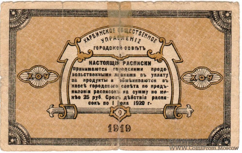 Расписка городского совета 1919 г. Харбинское Общественное Управление.