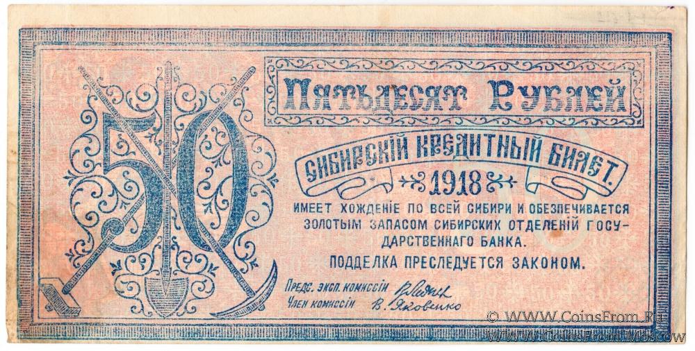 Сибирский кредитный билет 1918 г. БРАК: не допечатан; нет номера.