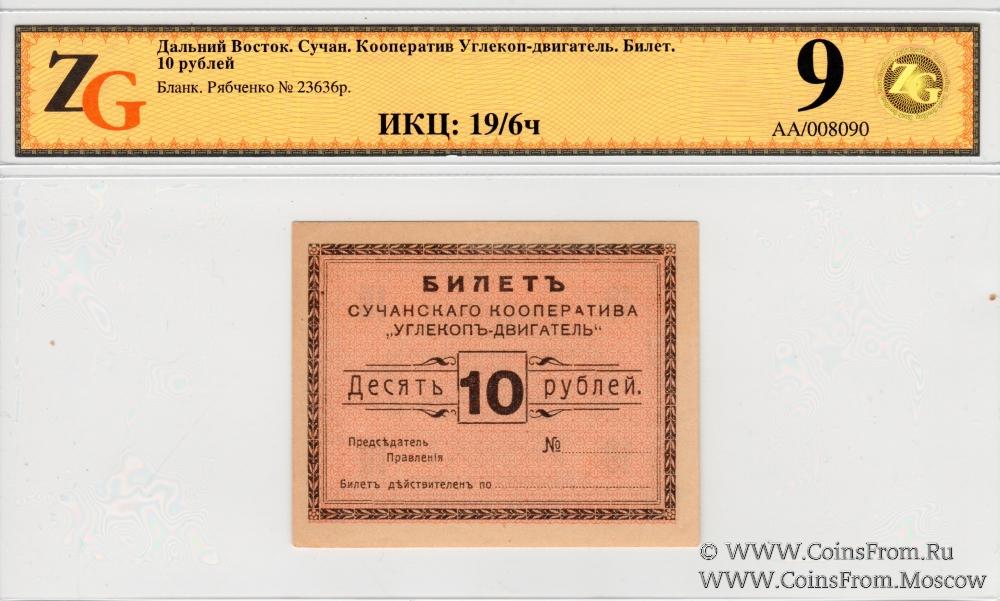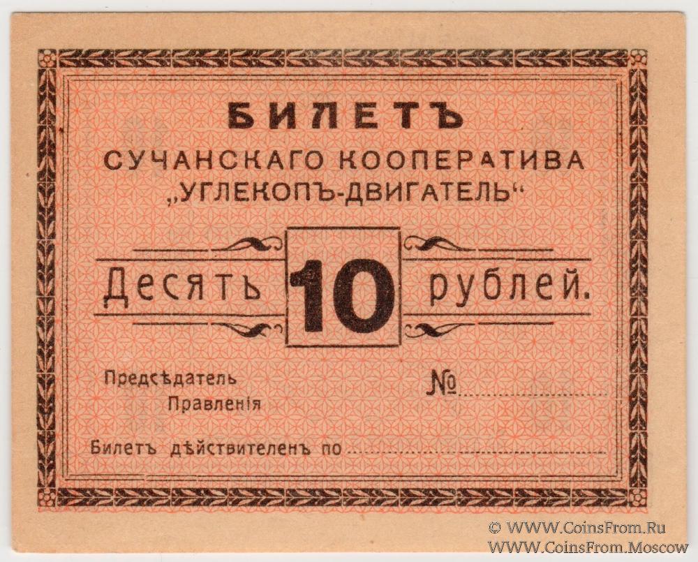 Билет без даты (1919 г.). Бланк. В слабе ZG. Отличная сохранность. Сучанский Кооператив "Углекоп-Двигатель".