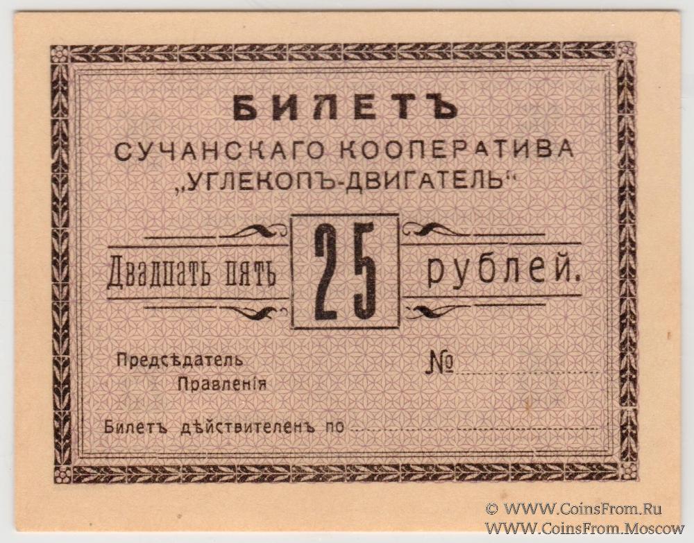 Билет без даты (1919 г.). Бланк. В слабе ZG. Отличная сохранность. Сучанский Кооператив "Углекоп-Двигатель".