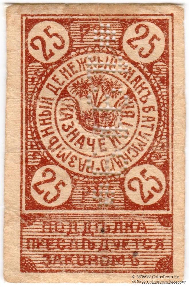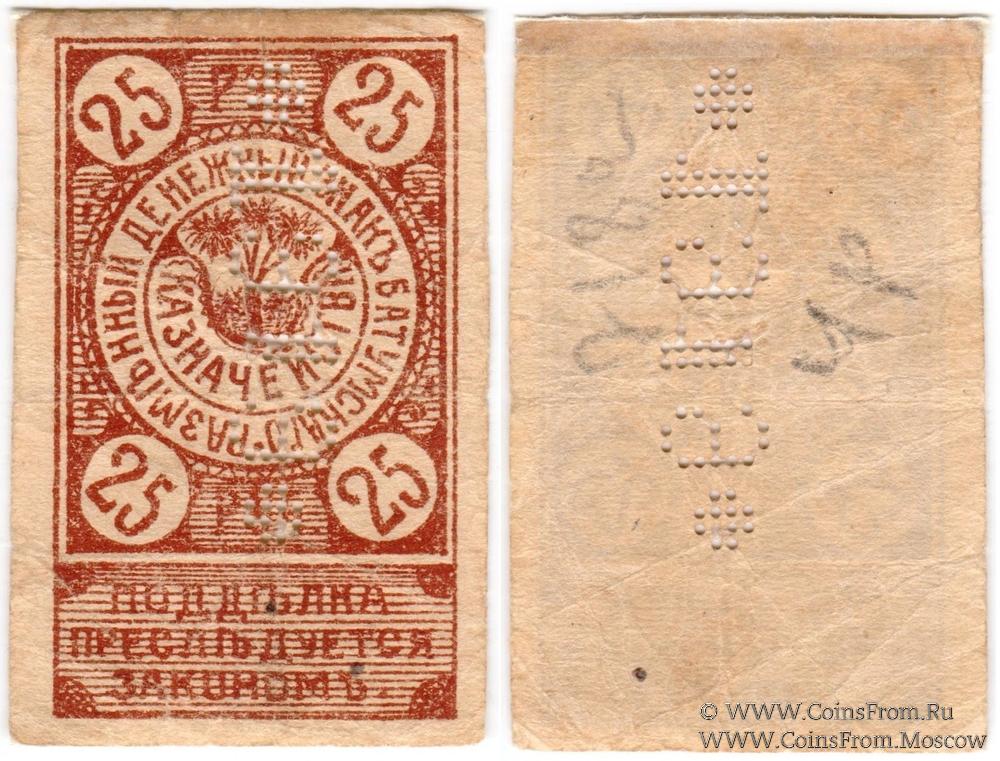 Разменный денежный знак без даты (1919 г.). Синий. Перфорация "*1919*". Батумское Казначейство.