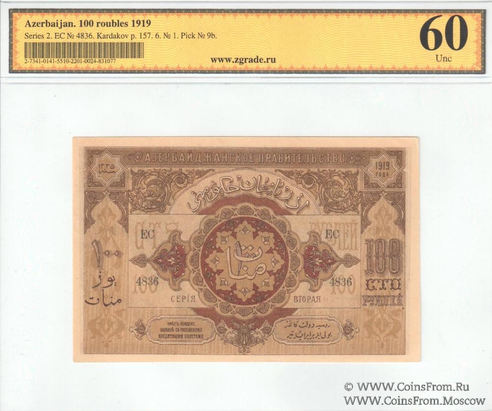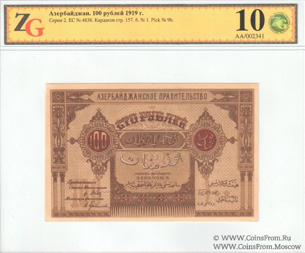 Без названия 1919 г. Серия вторая. Азербайджанское правительство. В слабе ZG. Отличное коллекционное состояние.