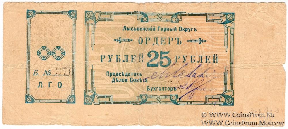 Ордер 1918 г. Серия Б. С номерным корешком и подписями ответственных лиц. Лысьвенский Горный Округ.