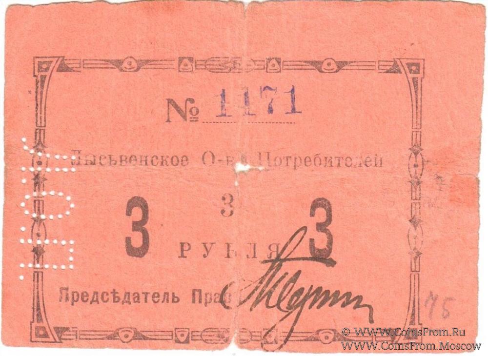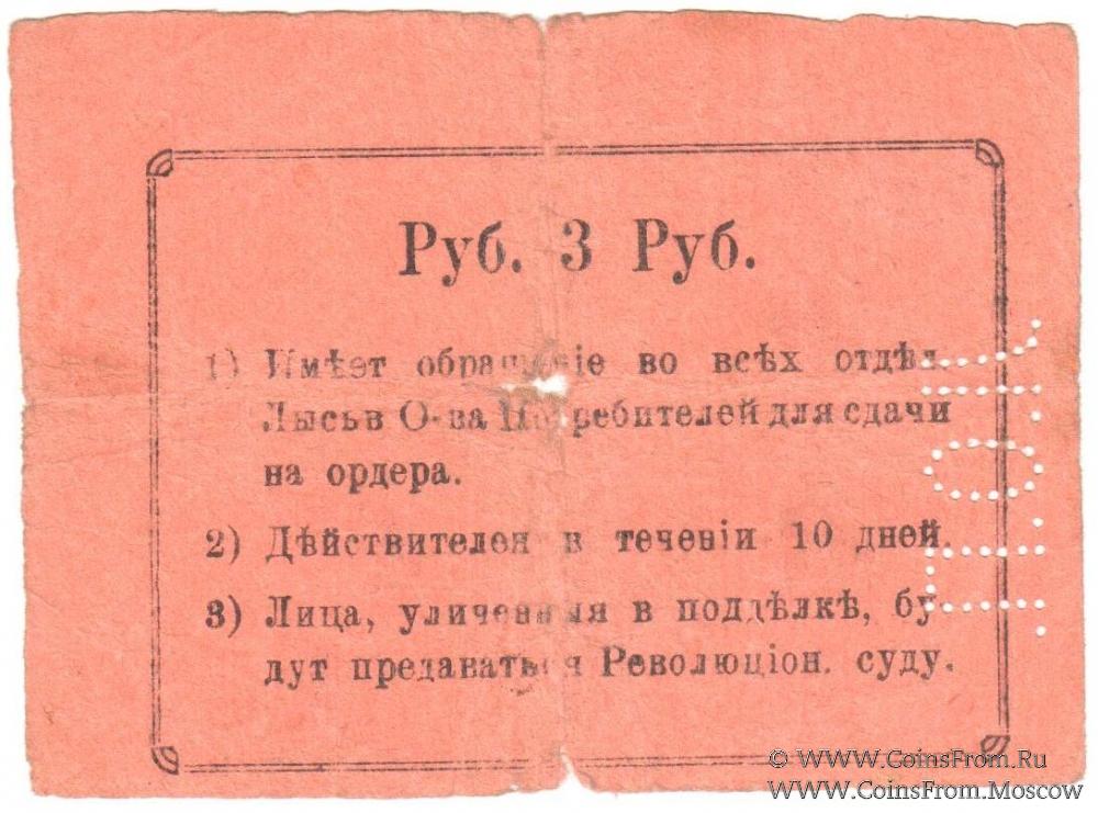 3 рубля 1918 г. (Лысьва)
