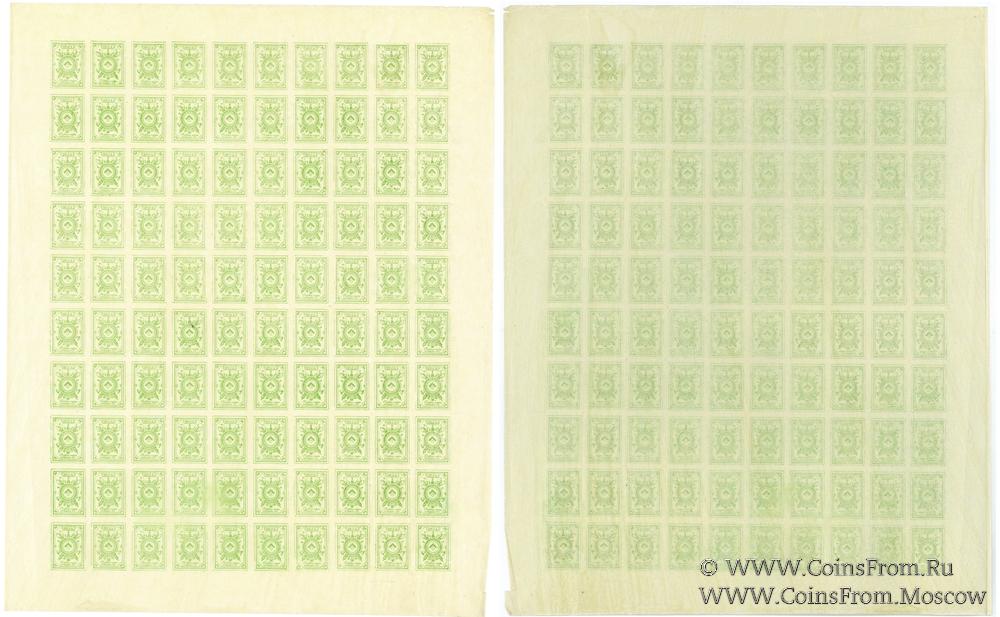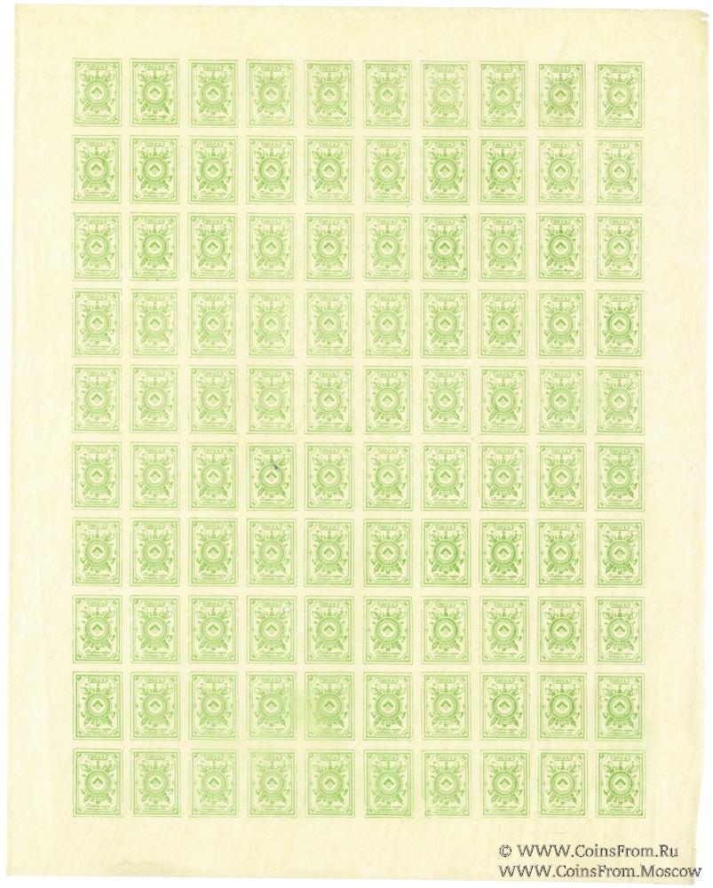 Почтовая марка ОКСА. Полный лист 100 шт. Аверс отдельно. Зелёная.