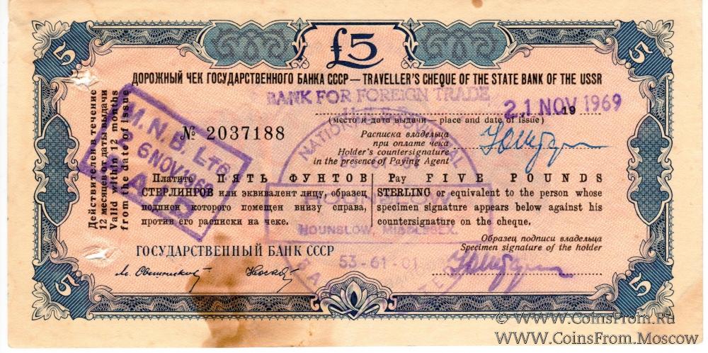 Дорожный чек 5 фунтов стерлингов 1969 г.