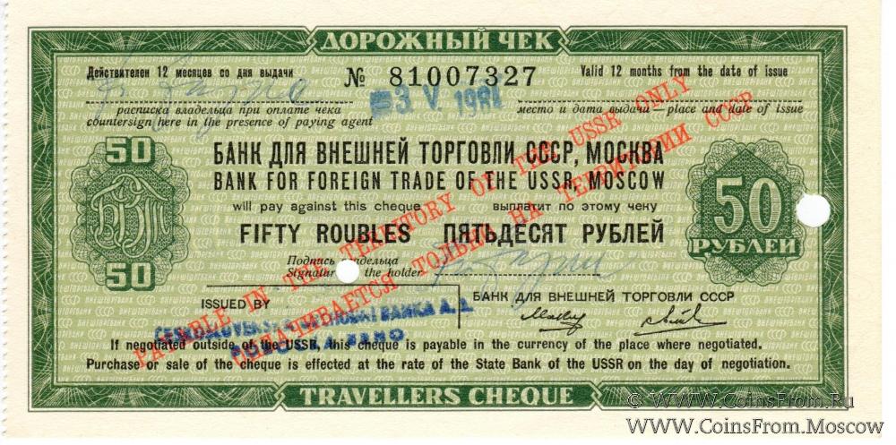Дорожные чеки Внешторгбанка СССР выпусков 1967-1987 гг.