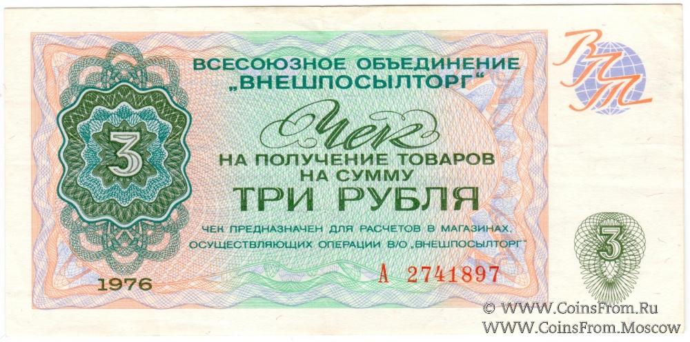 Чек 3 рубля 1976 г.