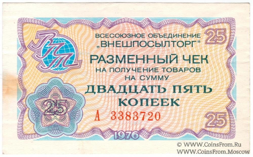 Разменный чек 25 копеек 1976 г.