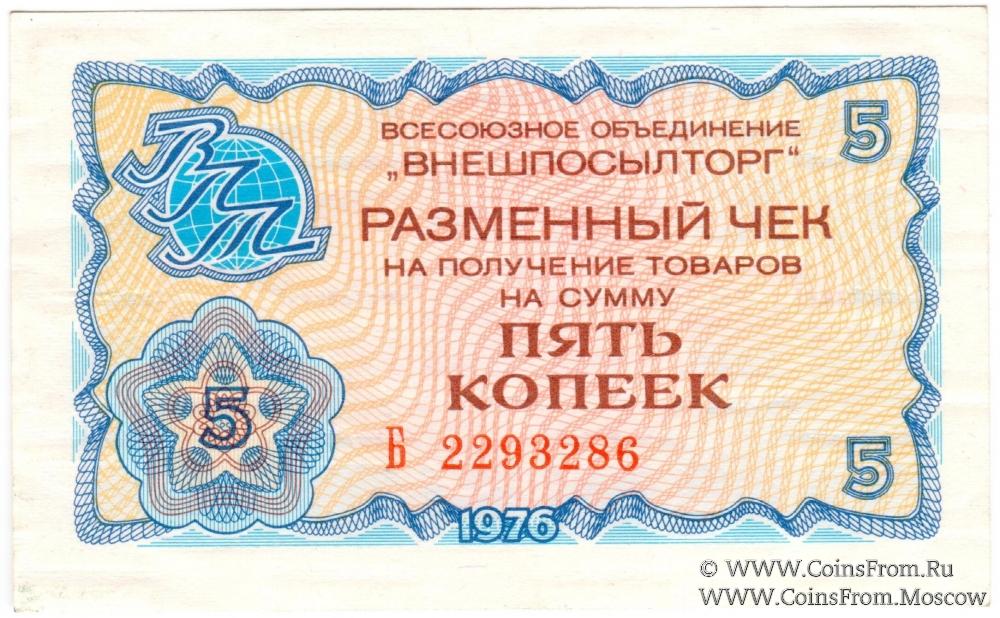 Чеки заменили сертификаты Внешпосылторга предыдущих выпусков (без полос, с желтыми и синими полосами).