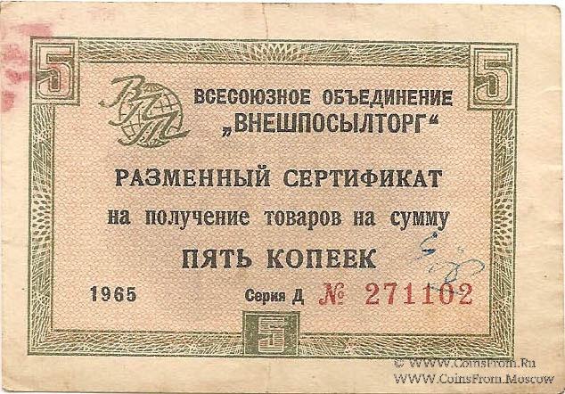 Выпуск 1965 г. для работающих в капстранах (без полосы). Серия Д. Водяной знак - "меандр". ГОЗНАК.