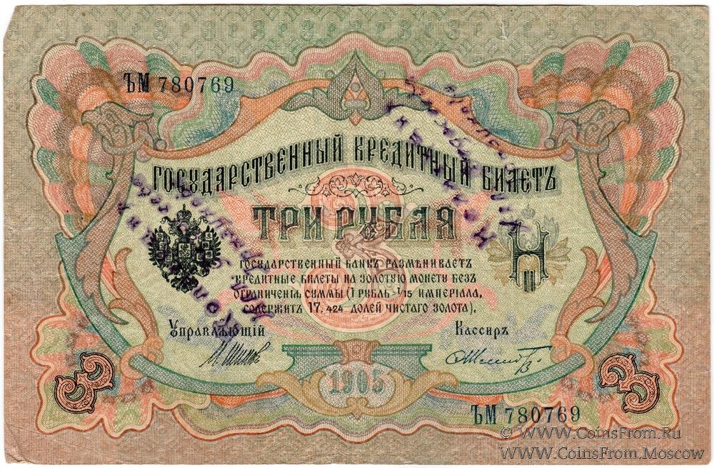 Водяной знак - "3" в фигурном орнаменте. Государственный Банк. Экспедиция заготовления Государственных бумаг (ЭЗГБ).