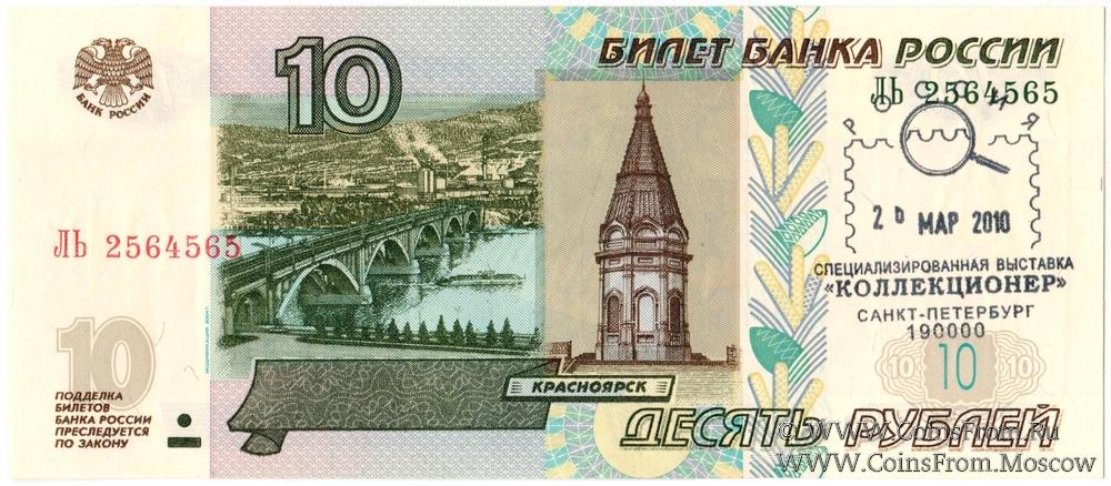 10 рублей 1997 (2004) г. НАДПЕЧАТКА