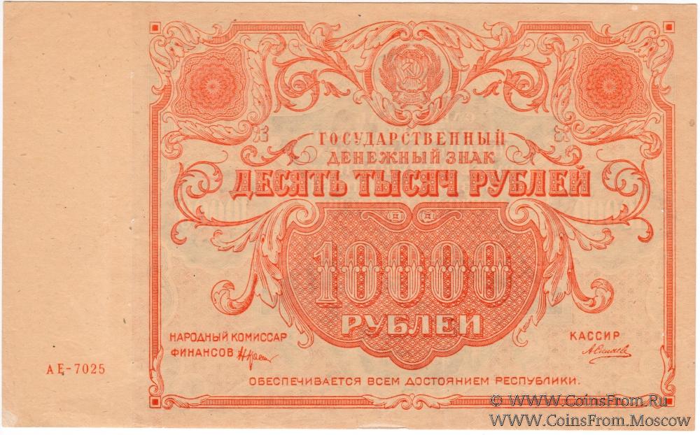 Государственный денежный знак РСФСР 10.000 рублей образца 1922 г.