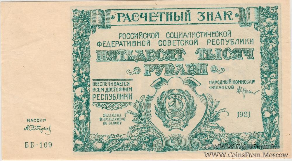 Расчетные знаки РСФСР образца 1921г. выпущены на основание декрета СНК от 16 июня 1921. В обращении до 1922 г.