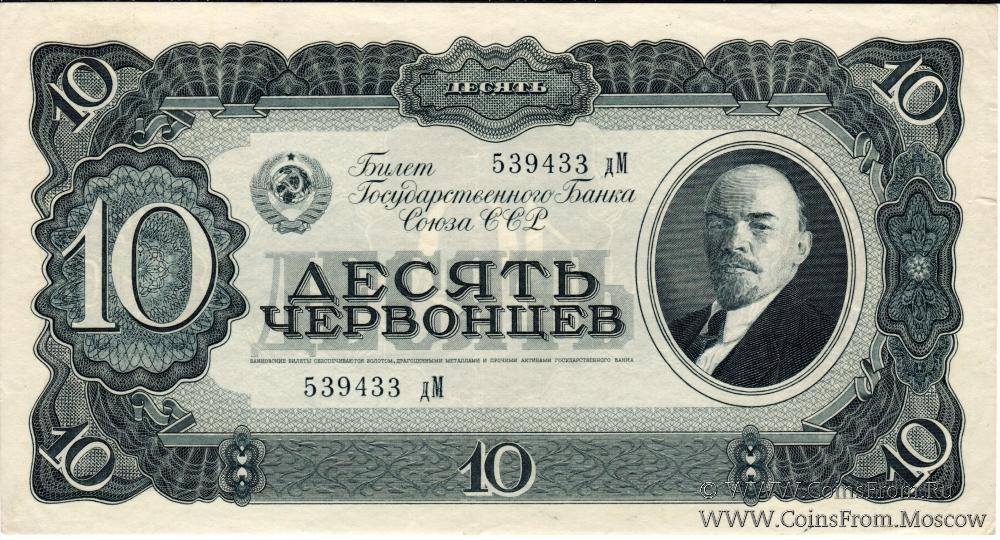 Все номиналы: 1 (тип серии Хх), 3 (тип серии Хх), 5 (тип серии ХХ) и 10 (тип серии хХ) червонцев.