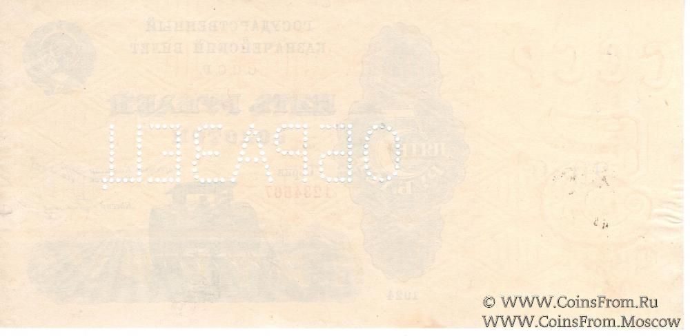 Казначейские билеты образца 1924 года были выпущены в феврале 1924 года согласно декрету ЦИК и СНК СССР от 5 февраля 1924 года. Выпуск в целях "создания устойчивых денег достоинством менее одного червонца, сообразуя размеры выпуска их с потребностями торгового о6орота". Билеты подписаны народным комиссаром финансов Г.Я. Сокольниковым и одним из кассиров. Билеты образца 1924 года оставались в обращении до денежной реформы 1947 года.