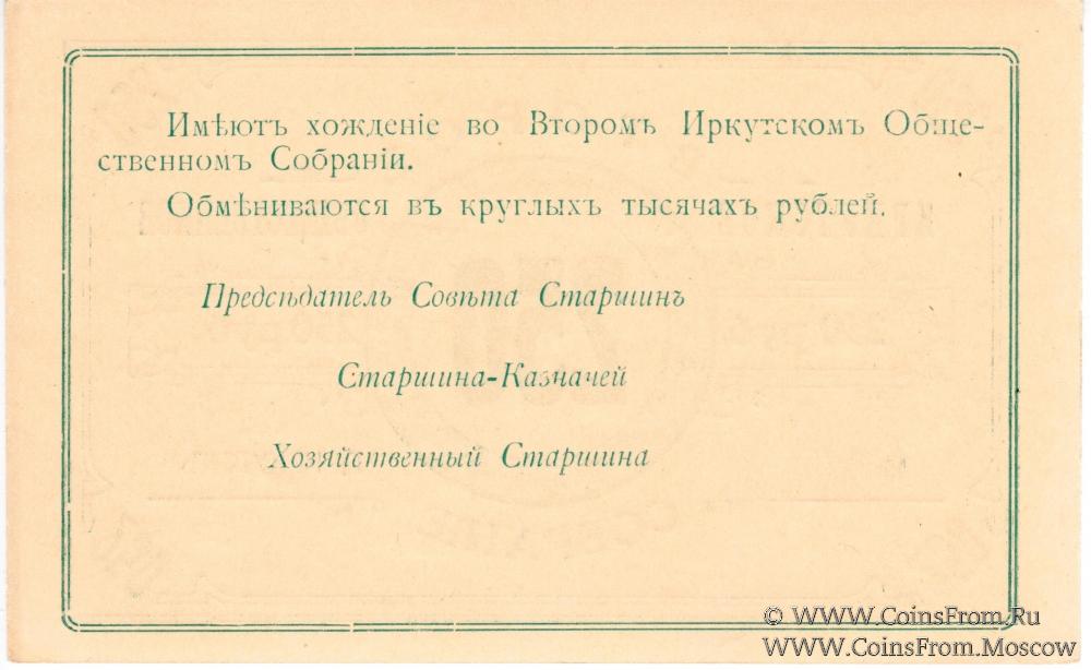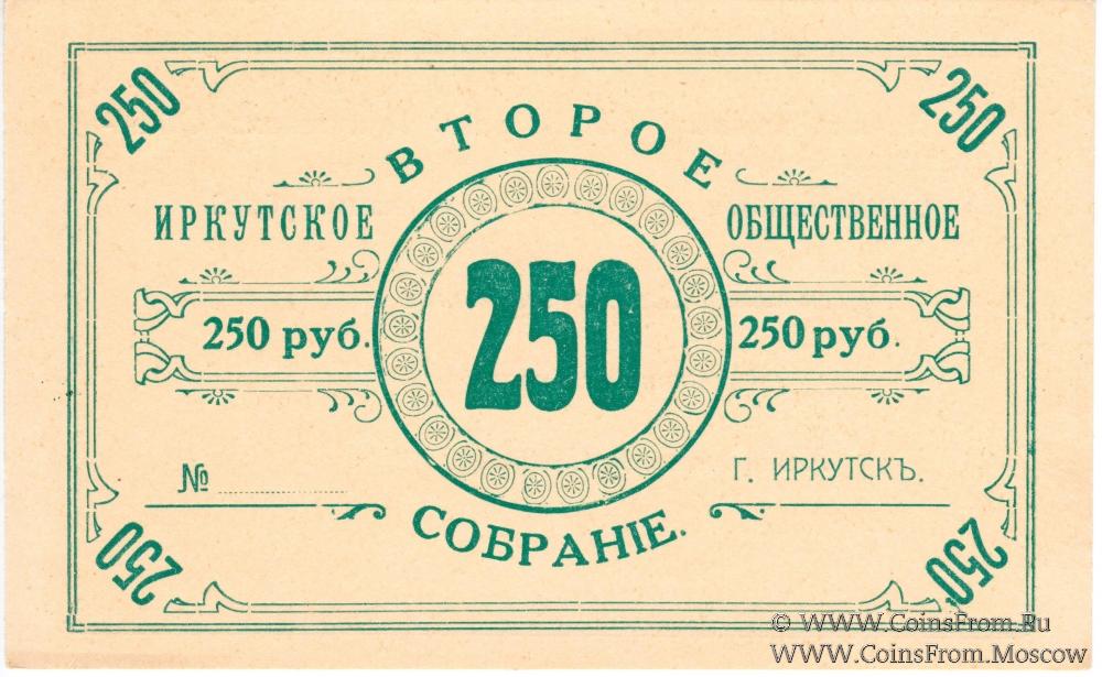 Номиналы: 100 руб. и 250 руб. Второе Иркутское общественное собрание (без названия).