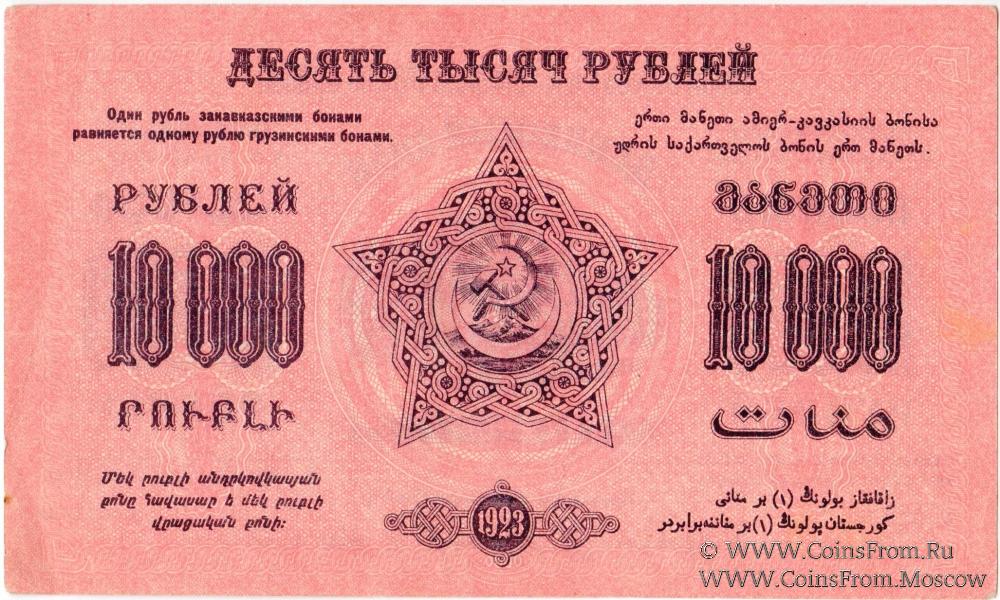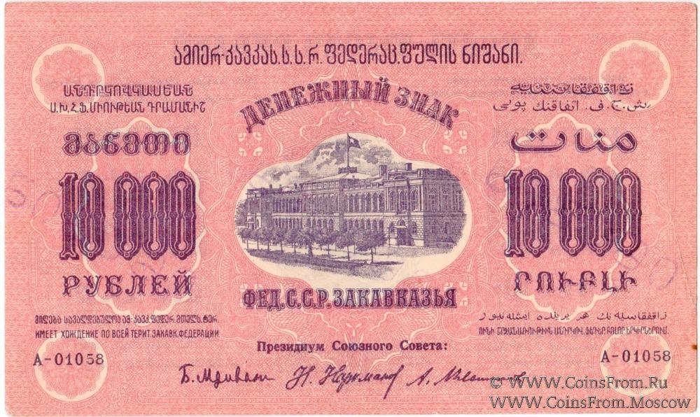 10.000 рублей (3-й выпуск, без в/з, завитки рамки РВ в одну сторону, розовые);