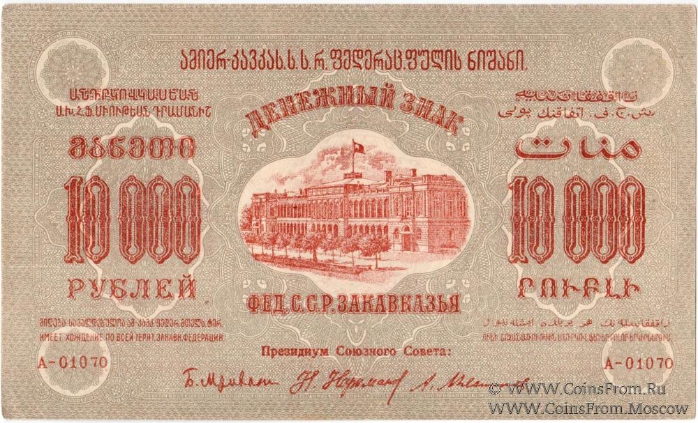 10.000 рублей (3-й выпуск, без в/з, завитки рамки РВ в одну сторону, серые);