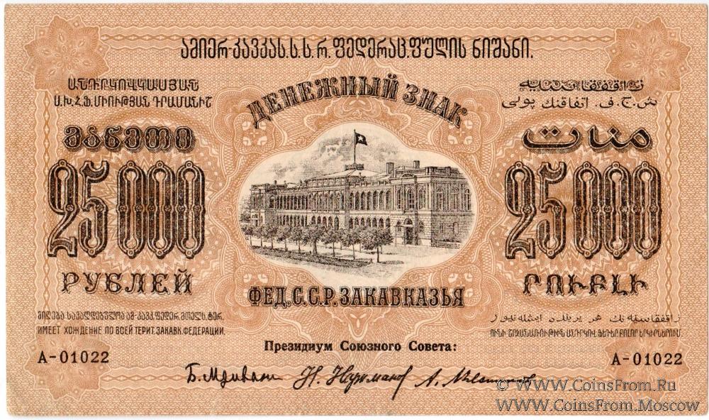 25.000 рублей (3-й выпуск, без в/з, завитки рамки РВ в одну сторону);