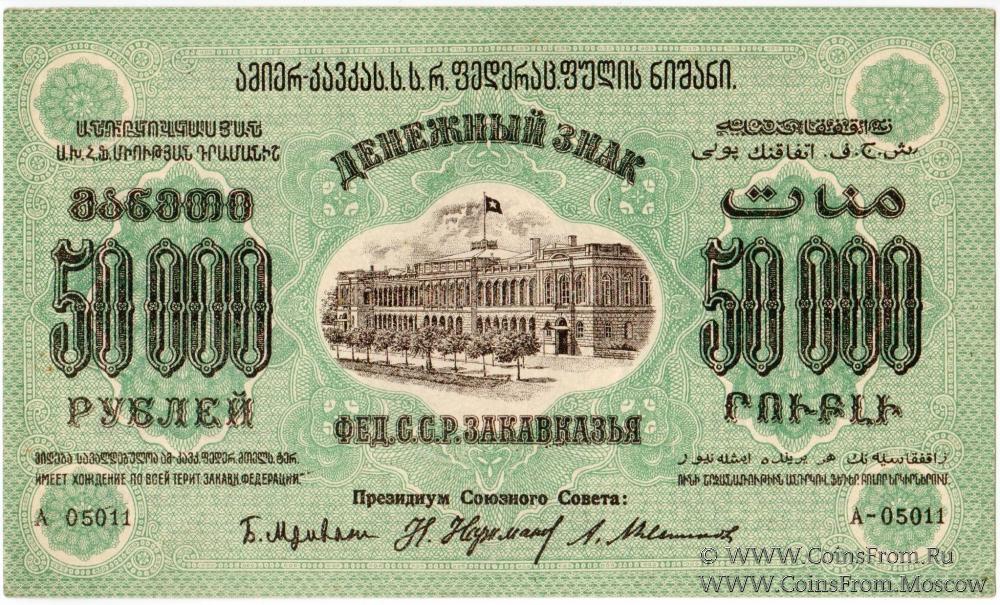 50.000 рублей (3-й выпуск, без в/з, завитки рамки РВ в одну сторону);