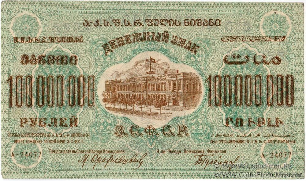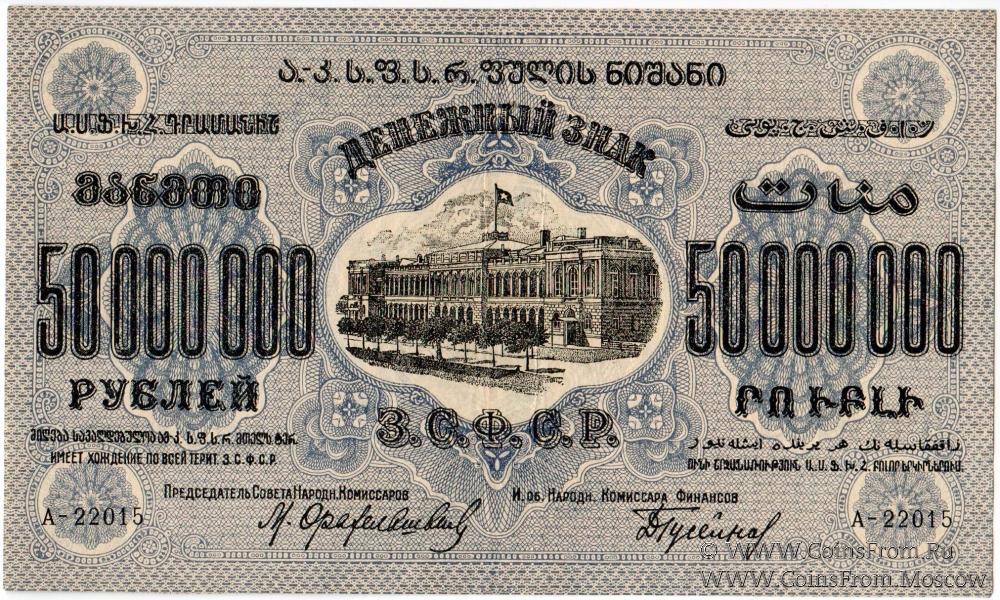 Для справки: по данным Закавказского финансово-статистического сборника, выпущенного в Тифлисе в 1924 году, к 14 апреля 1924 года было выпущено без малого 16 квадрильонов (точнее — 15 873 487 285 373 000) закавказских рублей.
