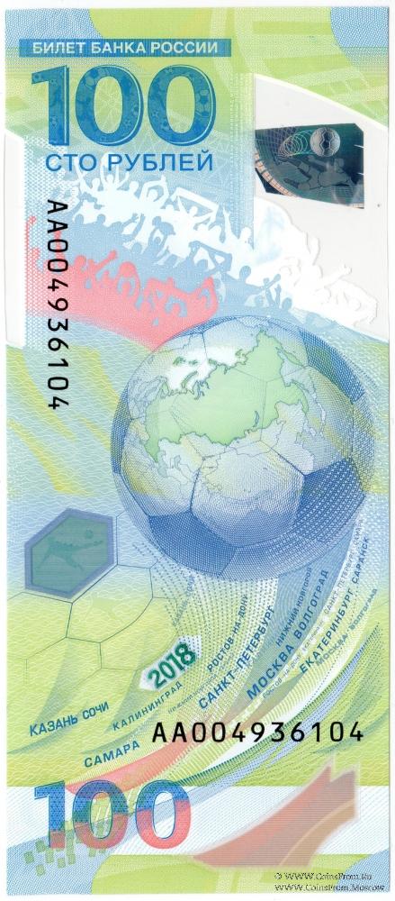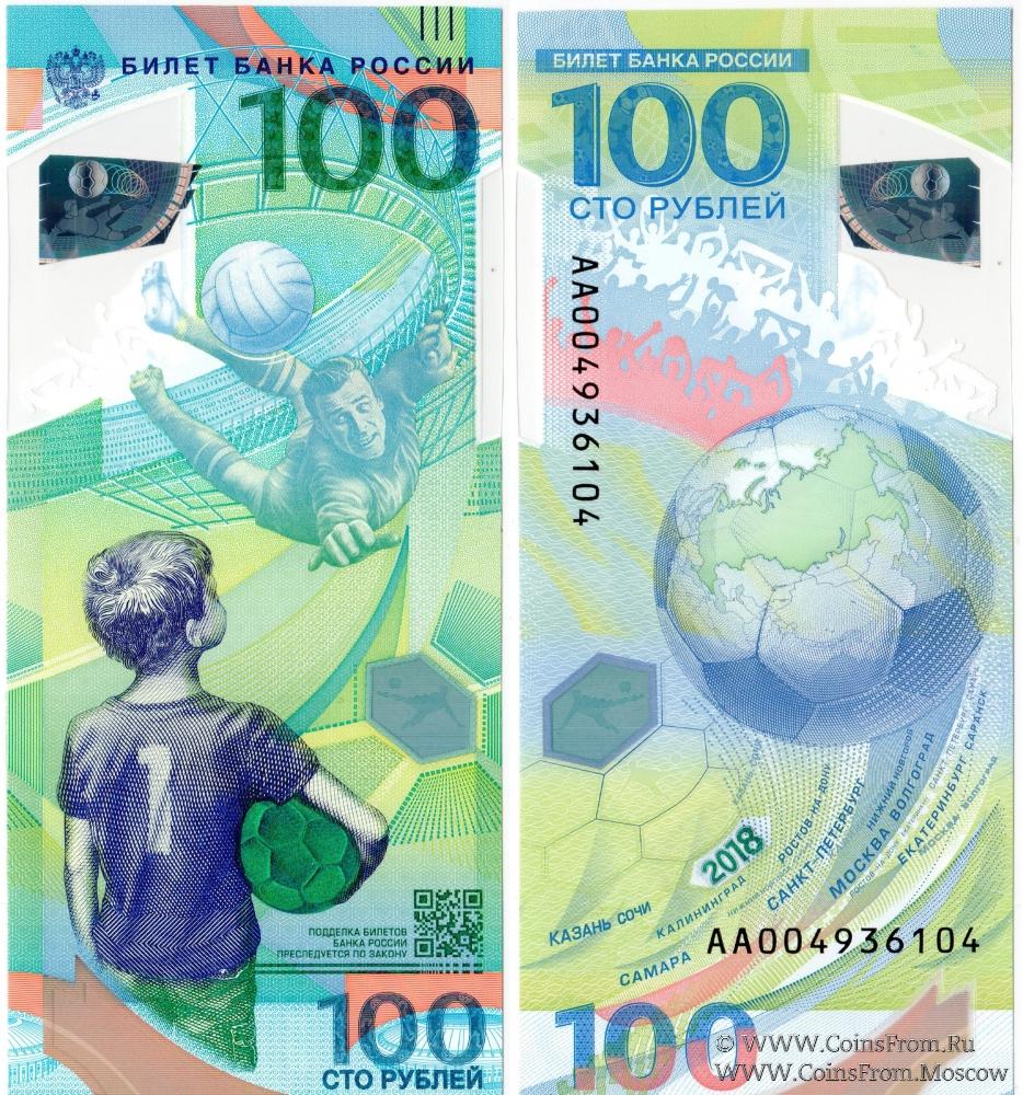 На реверсе находится число «2018» – год образца банкноты и год проведения Чемпионата.