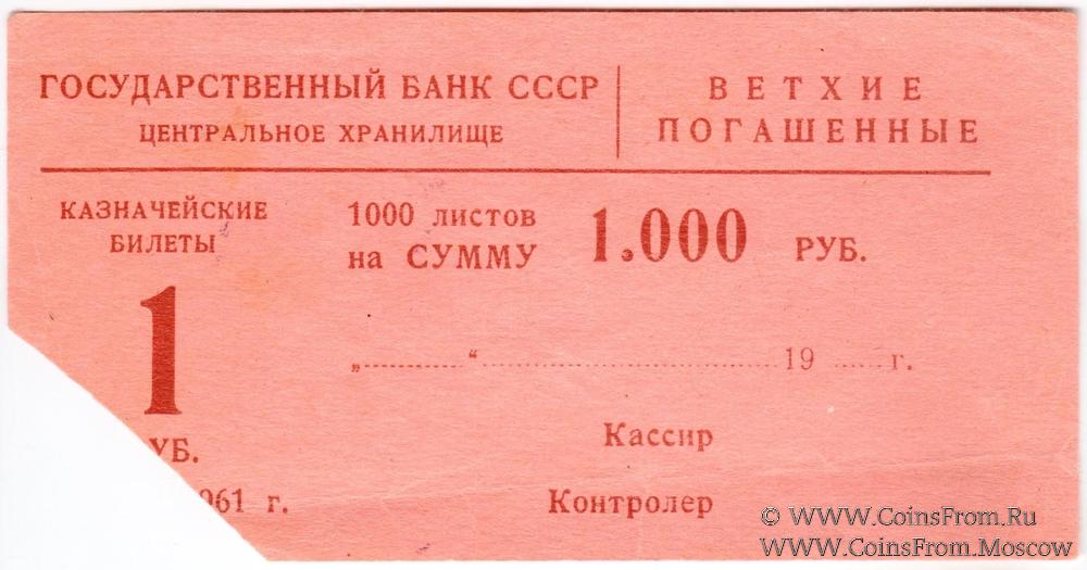 Накладка для банкнот 1 рубль 1961 г. "ВЕТХИЕ / ПОГАШЕННЫЕ"