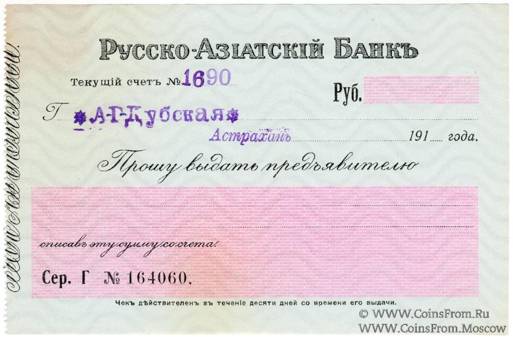 Астрахань. Счет Дубская А.Г. Русско-Азиатский Банк.