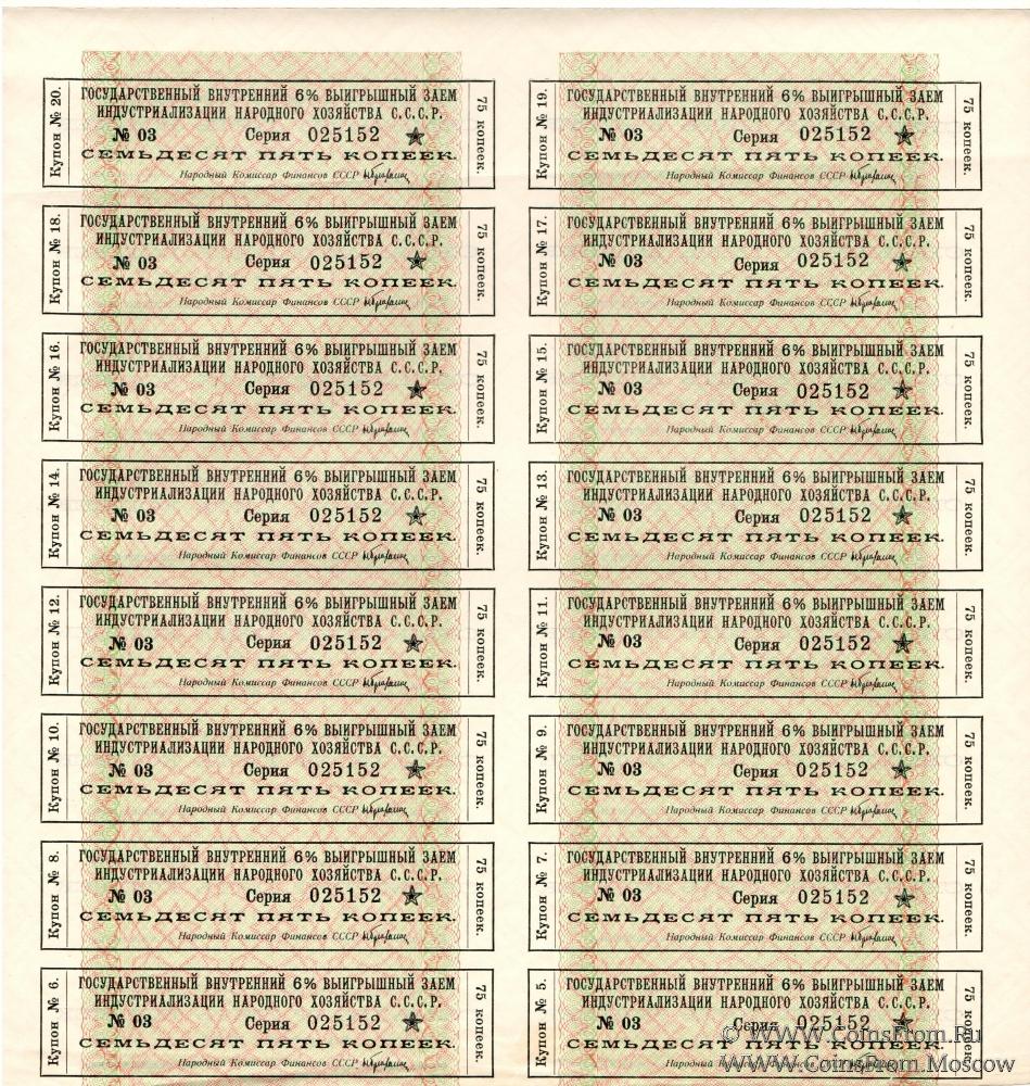 Государственный внутренний 6% выигрышный заем индустриализации народного хозяйства С.С.С.Р. 1927 года.