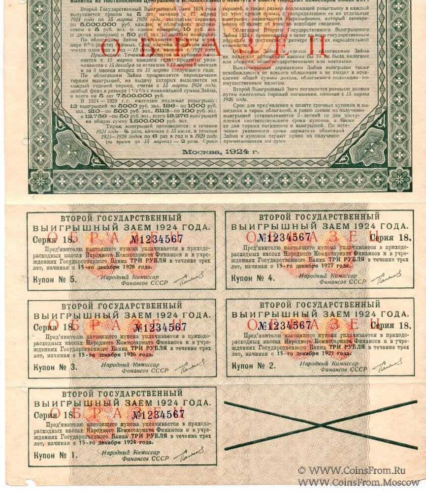 Второй государственный выигрышный заем. Процентно-выигрышный выпуск. Срок - 5 лет (15.03.1924-15.03.1929).