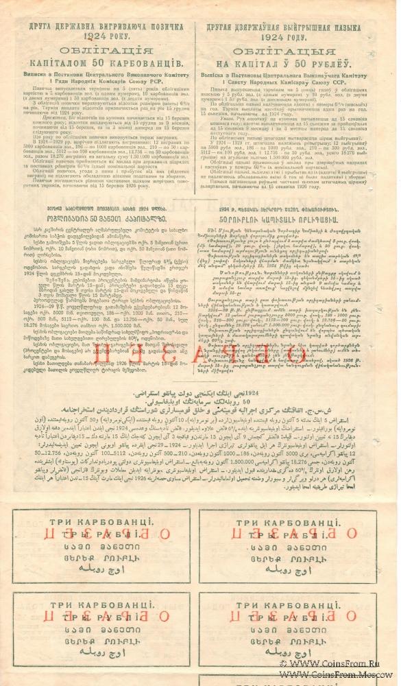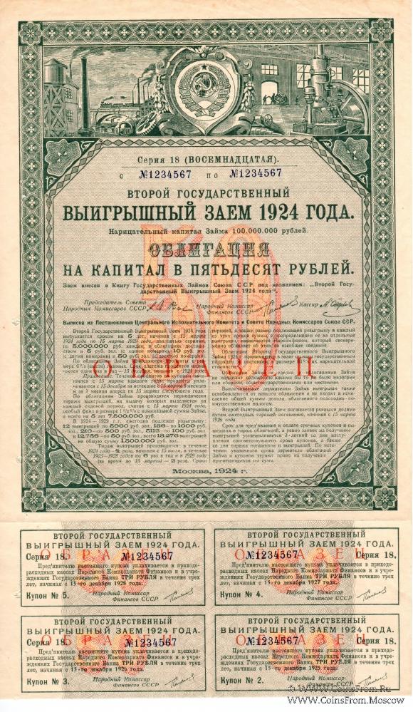 Облигация 50 рублей 1924 г. (ОБРАЗЕЦ)