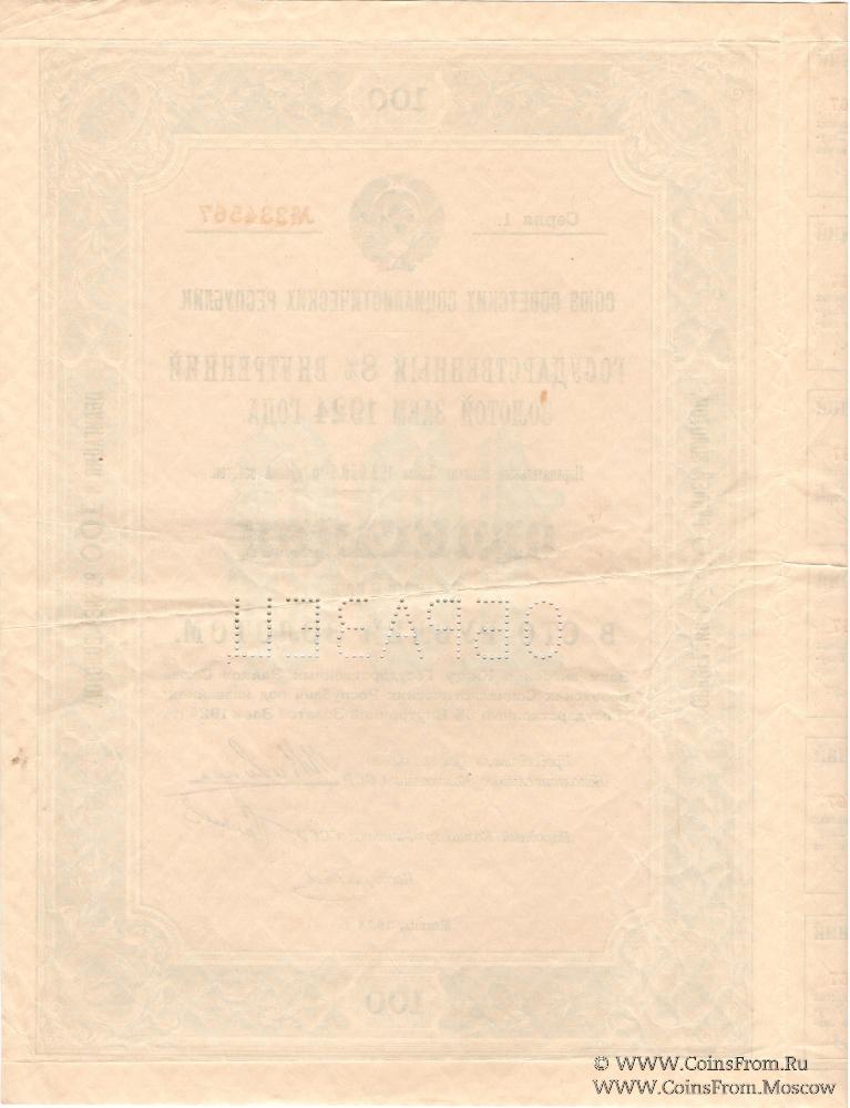 Облигация на капитал в 100 рублей золотом 1924 г. (ОБРАЗЕЦ)