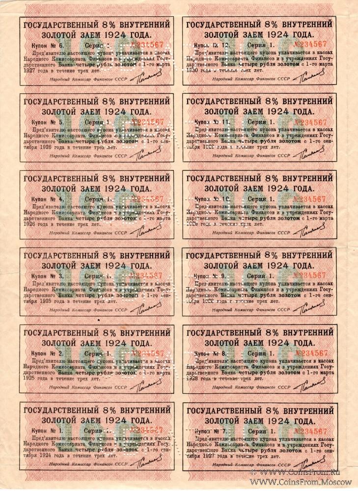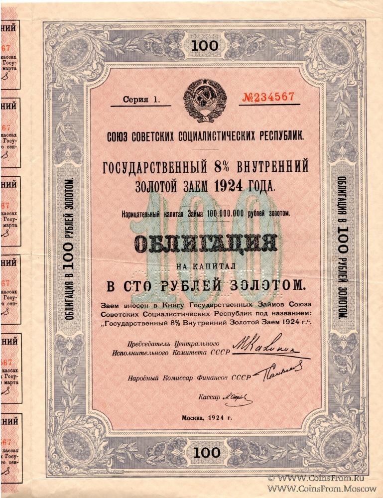Государственный 8% внутренний золотой заём 1924 года.