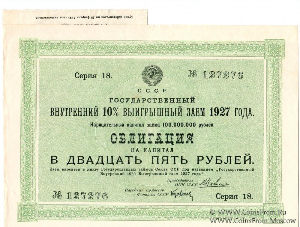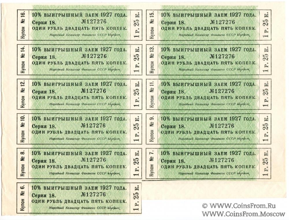 Процентно-выигрышный выпуск. Срок 8 лет (01.03.1927 - 01.03.1935). Серий - 20. Купонов - 16.
