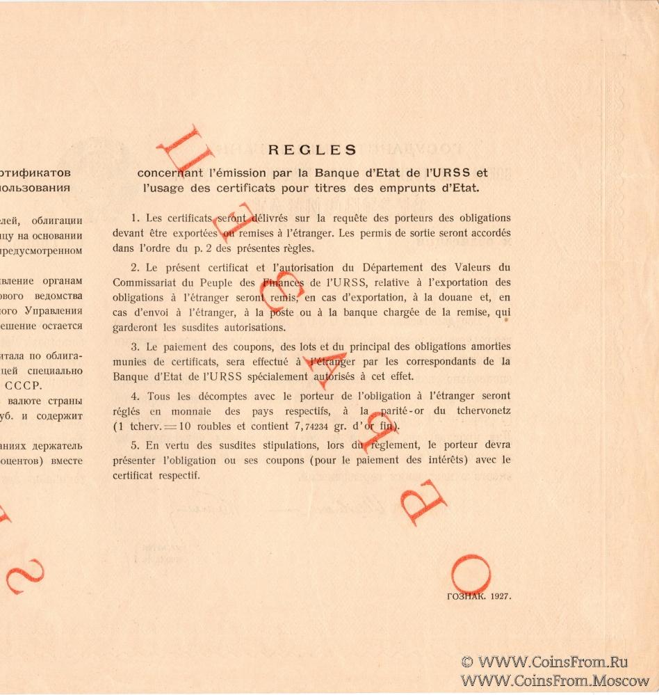 Сертификат (Гознак 1927 г.) Государственного Банка СССР к облигации Второго Госуд. Внутреннего Выигрышного Займа Индустриализации Народного Хозяйства СССР.