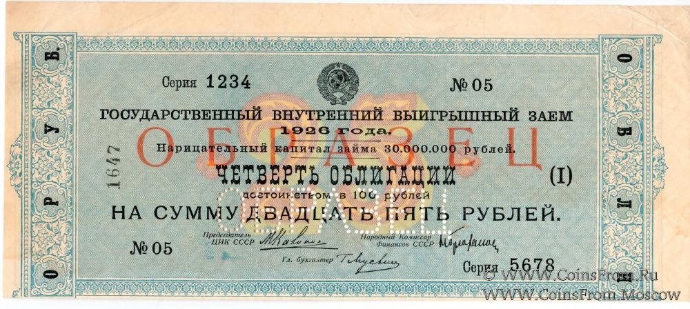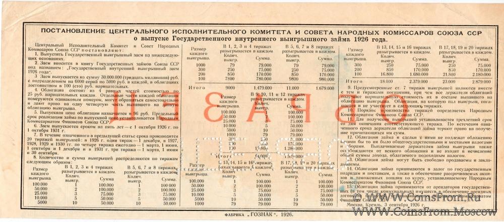 Облигация состоит из четырех равных частей (I, II, III, IV) на сумму 25 рублей каждая. Отдельные части каждой облигации нумеруются одинаковым номером. Они обращались самостоятельно и давали право на 1/4 выпавшего выигрыша.
