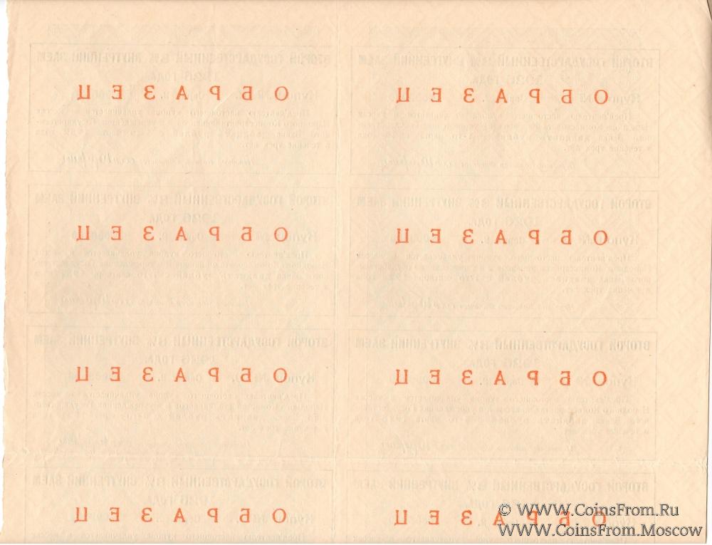 По горизонтали перфорационными отверстиями слово «ОБРАЗЕЦ» и надпечатка красного цвета с двух сторон слова «ОБРАЗЕЦ».