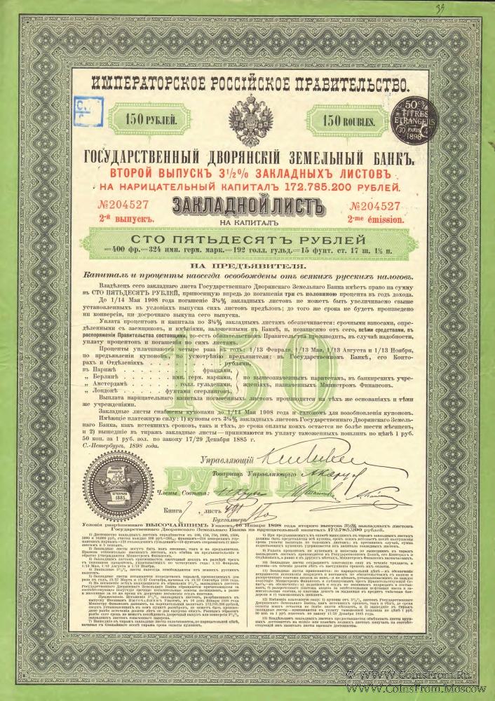 Государственный Дворянский Земельный Банк - банк ипотечного кредита, основанный в 1885 г. для поддержания землевладения потомственных дворян, разорявшихся ввиду отмены крепостного права. Чтобы исправить неблагоприятную ситуацию, банк приступил к выдаче долгосрочных займов крупным собственникам русской деревни. Действия банка распространялись на Европейскую Россию, за исключением Финляндиие, Польши, Прибалтийскиз губернийи и Закавказья. Ссуды выдавались помещикам под залог земельных владений в размере 60 - 75% от стоимости земли (в т.ч. обремененной долгами). Максимальный срок погашения ссуды, достигавший вначале 48 лет 4 мес, позже был увеличен до 51 года, а затем и до 66 лет 6 мес. Процент, уплачиваемый по ссуде, составлял в 1880-х гг. 5% - 6%, а к 1897 был снижен до 3,5%. Государственный крестьянский поземельный банк и Государственный дворянский земельный банк вместе сформировали целостную систему сельского кредитования и землеустройства Российской Империи, с помощью этой системы государство проводило экономическую политику в национальном масштабе. К началу Первой мировой войны это кредитно-финансовое учреждение было одним из крупнейших банков в Европе. Ликвидирован декретом ВЦИК от 14(27) декабря 1917.