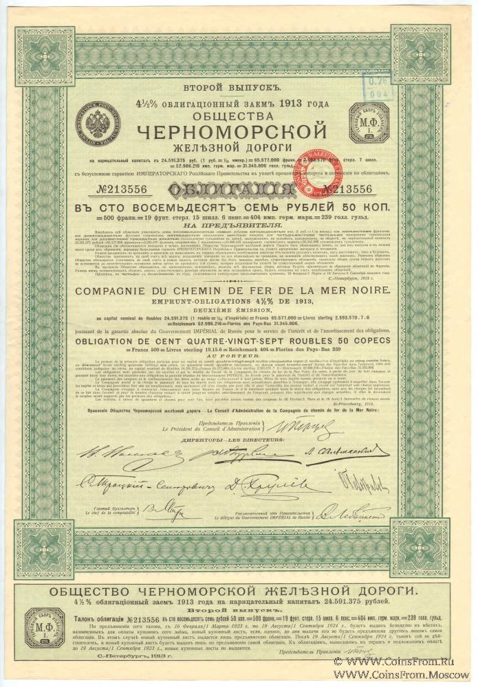 Черноморская побережная железная дорога – железная дорога Российской империи, построенная Обществом Черноморской железной дороги. Концессия по строительству утверждена императором в 1911 г. Устав Общества утвержден в 1912 г., его учредителями были Н.Н. Перцов, А.И. Путилов и С. С. Хрулев. Целью создания Общества объявлялась постройка и эксплуатация железнодорожной линии нормальной колеи от ст. Туапсе Армавир-Туапсинской железной дороги на соединение с Закавказскими железными дорогами у разъезда Квалони (позже устав был изменен и примыкание было установлено у Новосенаки) с устройством элеваторов, складов, пристаней и т.д. Протяжение – 322 в. (357 км). Стоимость работ – 70 млн. руб. Большая строительная стоимость дороги объяснялась трудностями ее сооружения – местность изобиловала обрывистыми горными склонами, ущельями, пересекалась многочисленными горными реками, скальный грунт во многих местах грозил оползнями, требовалось осушить почву на значительном расстоянии. Только на сочинском участке предстояло построить 11 мостов. На протяжении дороги необходимо было соорудить 18 тоннелей (уже в ходе работ в результате дополнительных изысканий их число снизилось до 15).