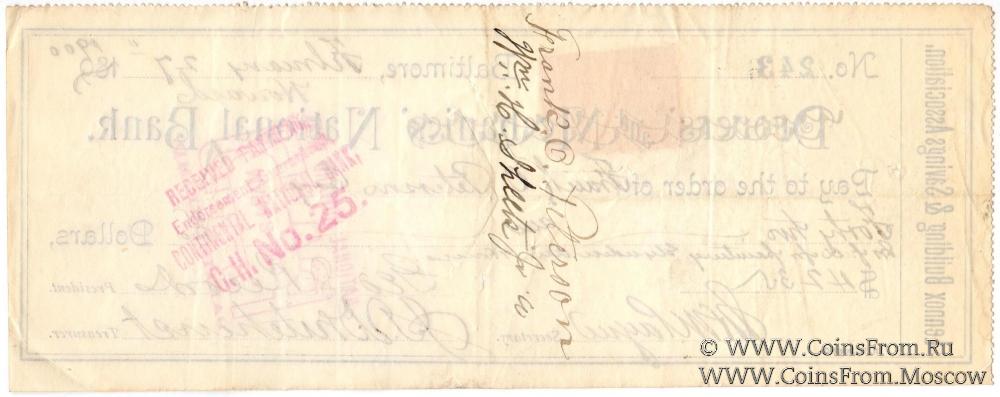 Банковский чек (оплачен). Элементы водяного знака. Drovers and Mechanics National Bank. Howard. Lennox Building & Savings Association.