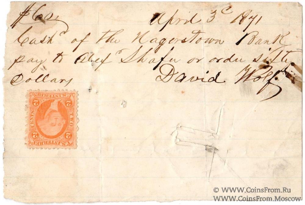 Банковский чек. Без бланка. Хейгерстаун Банк (Hagerstown Bank).