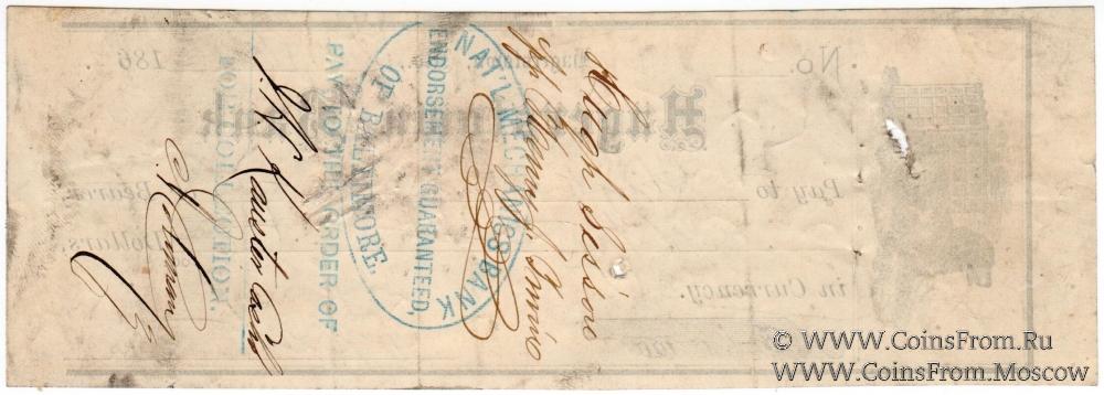 Банковский чек (погашен, оплачен). Перфорация. Штампы. Подписи. Хейгерстаун Банк (Hagerstown Bank).