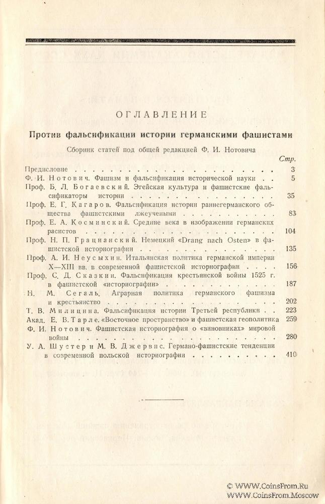 Сборник охватывает ряд важнейших исторических этапов и вскрывает на конкретном историческом материале жульнические фальсификаторские приёмы гитлеровских "историков". Статьи расположены в хронологическом порядке проблем, которые подвергнуты рассмотрению. Состав сборника приводится в оглавлении.